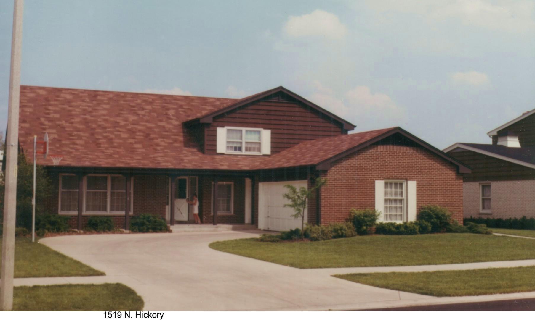 This house had about 2700 sq ft. two floors and about a 2/3 basement. On the first floor was a living room, small dining room, large kitchen, large family room with fireplace, half bath, study, and laundry room. Upstairs was a very large master bedroom or dormitory, two full baths and three bedrooms, one quite large. We loved the house and were to live in it for twenty years. The yard was not large because the lot was only 75 x 135=1/4 acre. The address was 1519 N. Hickory, Arlington Heights.