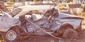 Apparently none of the kids were wearing seat belts. Rose had flown thru the front windshield and landed on the engine. The police theorized that from the location of the cars, etc. that the Ertl car was out of control and basically moving sideways into Dale and Barb’s lane when they hit them from the side. There was no evidence of alcohol being involved and the only thing we could think of was that Ertl’s were going too fast coming around the curve after the overhead bridge.