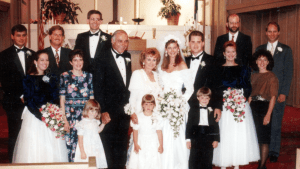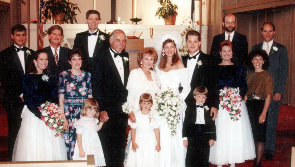 Patricia and Charley wedding (9/7/91)-Patty and Charlie had gotten engaged sometime in early 1991. They wanted a Catholic Church wedding in the Arlington Heights area, but Charlie’s annulment from his first marriage was in process and they could not get married at Holy Family without it. None of us knew when or whether the annulment would come through and thus it was impossible to plan for a wedding at Holy Family. We therefore contacted the Christian Community Church in Rolling Meadows and the pastor there was very nice. As a total coincidence he and I worked out at the same Bally Fitness Center in Schaumburg. Charlie had two of his buddies from California in the wedding party and they stayed at Plummers, our next-door neighbor. The rehearsal dinner the night before was at a local restaurant, the Embers (Quentin and Algonquin). We had everyone over to our house after that, including Charlie’s parents and his grandmother. The wedding was very nice. We had the reception at Rolling Green County Club.